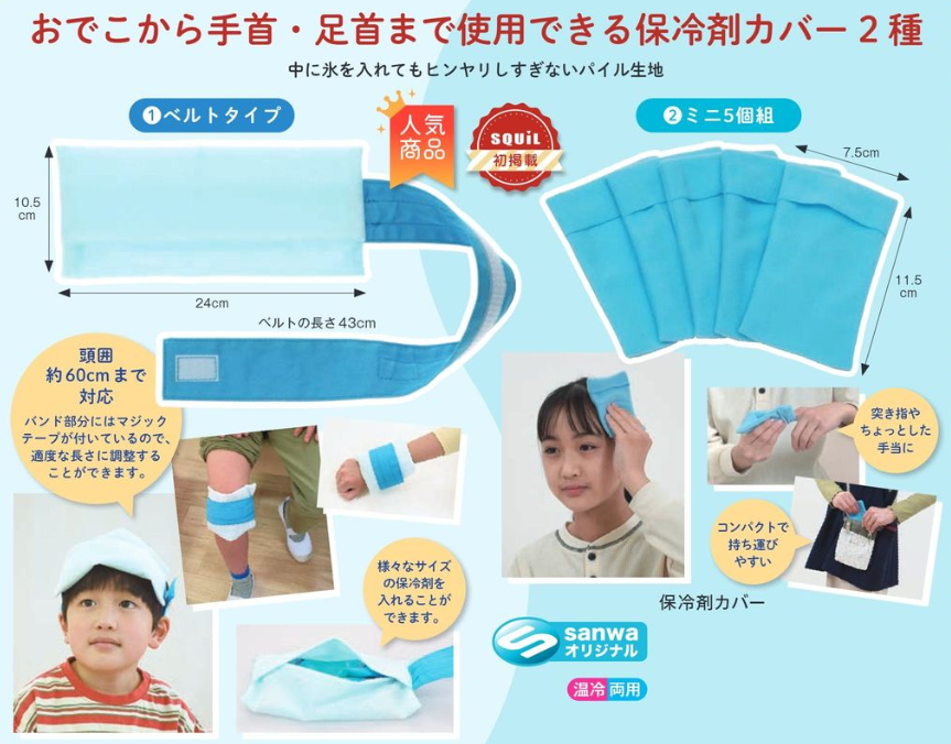 おでこから手首・足首まで使用できる保冷剤カバー2種。
