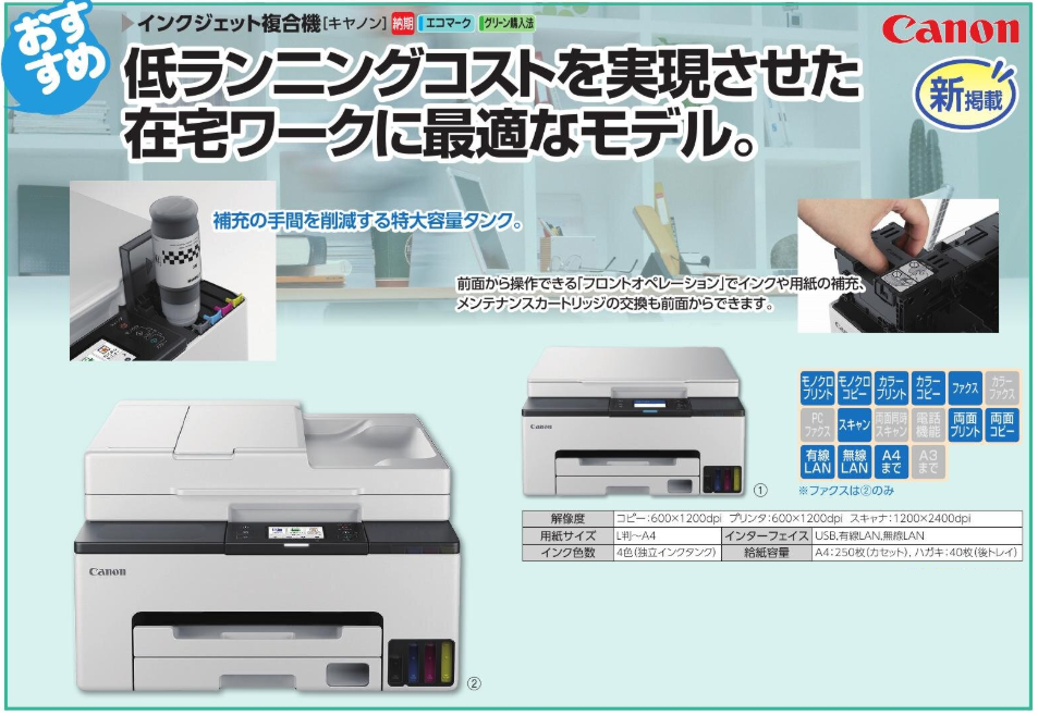 特大サイズのインクタンクでインクコストを低減。優れたコストパフォーマンスを提供します。
